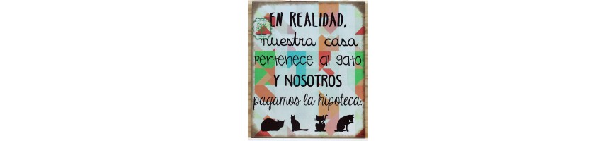 CUADRO "EN REALIDAD NUESTRA CASA…MASCOTAS" Cuadro con base de madera de 5 mm de espesor. Medidas disponibles: 17x20, 20x20 y 29x35 cm.Para colgar. Hecho a mano.Envíos en toda España.