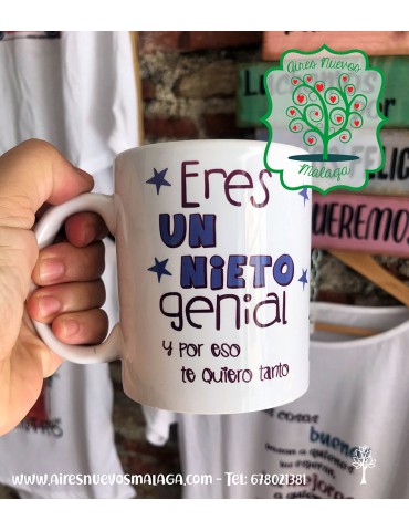 TAZA "ERES UN NIETO GENIAL" Tazas de cerámica para lavavajillas y microondas.Capacidad 33 cl.Medidas 28 x 8 cm. Envíos en toda España.