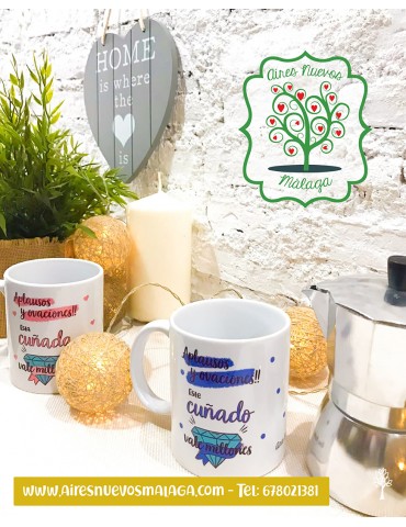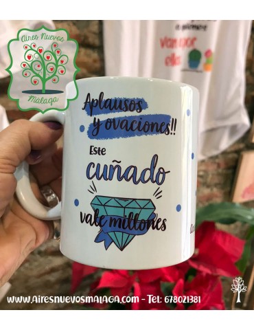 TAZA "CUÑADO" Tazas de cerámica para lavavajillas y microondas.Capacidad 33 cl.Medidas 28 x 8 cm. Envíos en toda España.