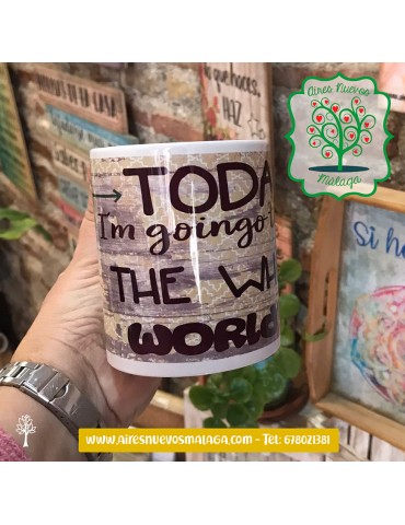 TAZA "TODAY I´M GOING TO EAT THE WHOLE WORLD" Tazas de cerámica para lavavajillas y microondas.Capacidad 33 cl.Medidas 28 x 8 cm. Envíos en toda España.