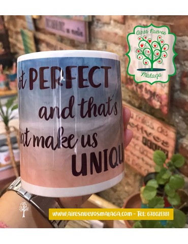 TAZA "WE´RE NOT PERFECT" Tazas de cerámica para lavavajillas y microondas.Capacidad 33 cl.Medidas 28 x 8 cm. Envíos en toda España.