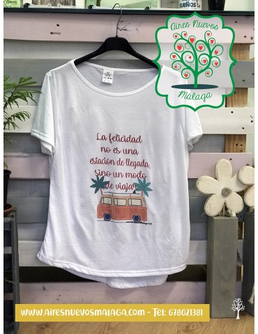 Camiseta "LA FELICIDAD NO ES UNA ESTACIÓN DE LLEGADA SINO UN MODO DE VIAJAR"