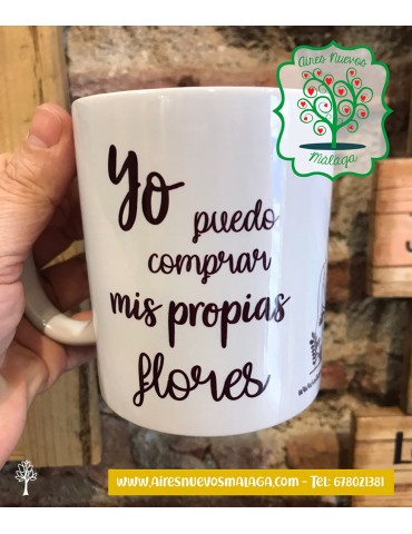 TAZA “YO PUEDO COMPRAR MIS PROPIAS FLORES" Porque todas lo valemos. Tazas de cerámica para lavavajillas y microondas.Capacidad 33 cl.Medidas 28 x 8 cm. Envíos en toda España.