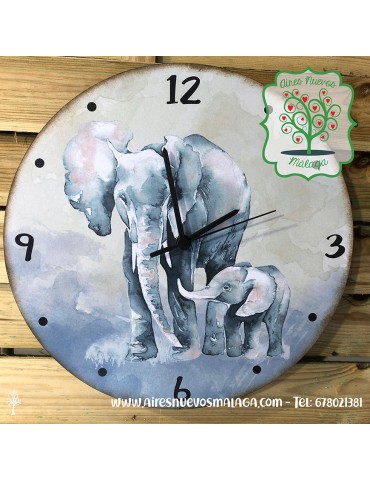 RELOJ "ELEFANTES" Reloj con base de madera de 3 mm de espesor. Medida: 29 cm de diámetro.Para colgar. Hecho a mano.Envíos en toda España.