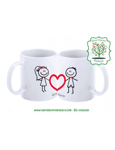 Conjunto de tazas "PAREJA CORAZÓN" Para empezar el día con buena energía y buena compañía... Conjunto de tazas de cerámica de alta calidad para compartir un buen desayuno en pareja.Diseños propios.Envíos a toda España.