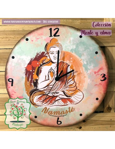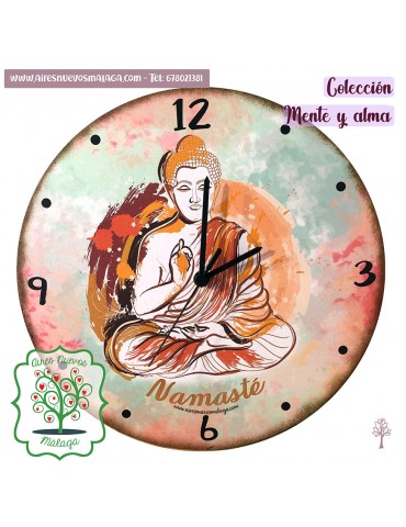 RELOJ "NAMASTÉ BUDA" Reloj con base de madera de 3 mm de espesor. Medida: 29 cm de diámetro.Para colgar. Hecho a mano.Envíos en toda España.