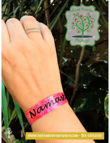 PULSERA DE TELA "NAMASTÉ" Pulseras de tela de poliéster, de 26,5x1x5cm (aproximados).Hechas a mano.Envíos en toda España.