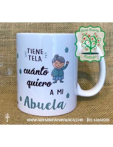TAZA "TIENE TELA...ABUELA" Tazas de cerámica para lavavajillas y microondas.Capacidad 33 cl.Medidas 28 x 8 cm. Envíos en toda España.