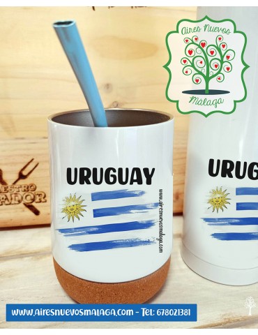 Mate térmico corcho / Tereré "BANDERA URUGUAY" Vaso térmico.