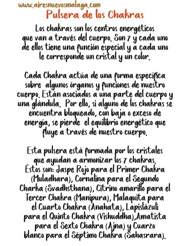 "PULSERA DE LOS CHAKRAS" Esta pulsera está formada por los cristales que ayudan a armonizar los 7 chakras.Los chakras son los centros energéticos que van a través del cuerpo.