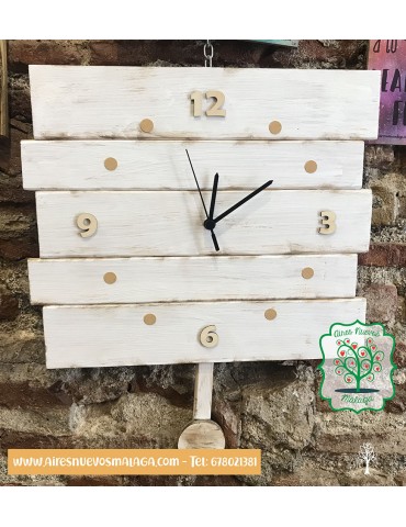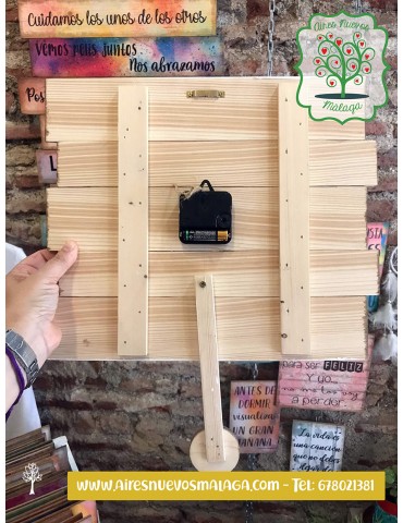 RELOJ DE LISTONES DE MADERA CON UN FALSO PÉNDULO Reloj de madera de listones de 1 cm de espesor. Medida aproximada: 37x30x2cm. (más 12cm del falso péndulo) Para colgar. Para interior. Hecho a mano. Envíos en toda España.
