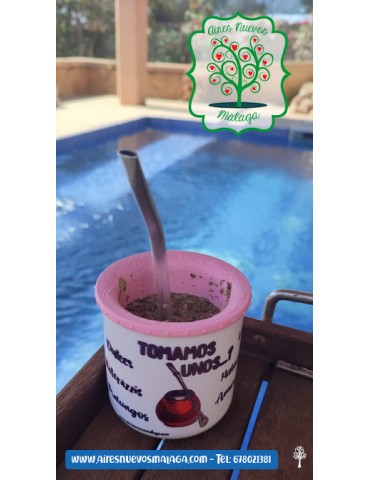 Mate con bombilla autolimpiante "TOMAMOS UNOS... MATECITOS, MATES..."