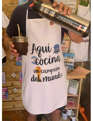 Delantal "AQUÍ COCINA UN CAMPEÓN DEL MUNDO"