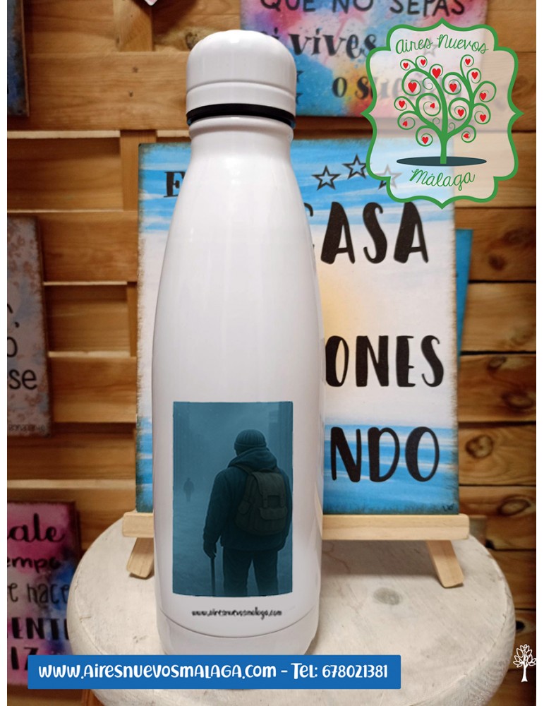Botella termo de acero inoxidable color blanco.