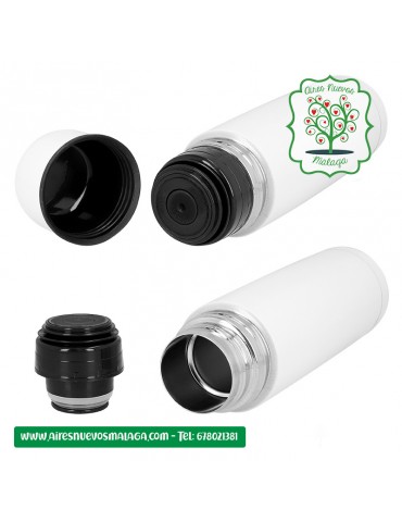 Tiene un tapón externo que se puede usar como vaso (Blanco el de 500ml y plateado el de 750ml).