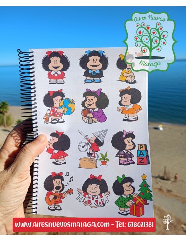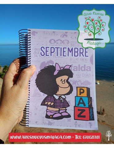 Inspirada en la ternura, el ingenio y la mirada curiosa de Mafalda, esta agenda combina organización y creatividad en un formato único, hecho a mano y con amor.