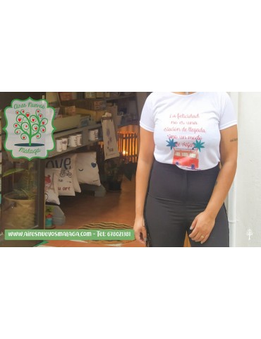 Camiseta "LA FELICIDAD NO ES UNA ESTACIÓN DE LLEGADA SINO UN MODO DE VIAJAR"