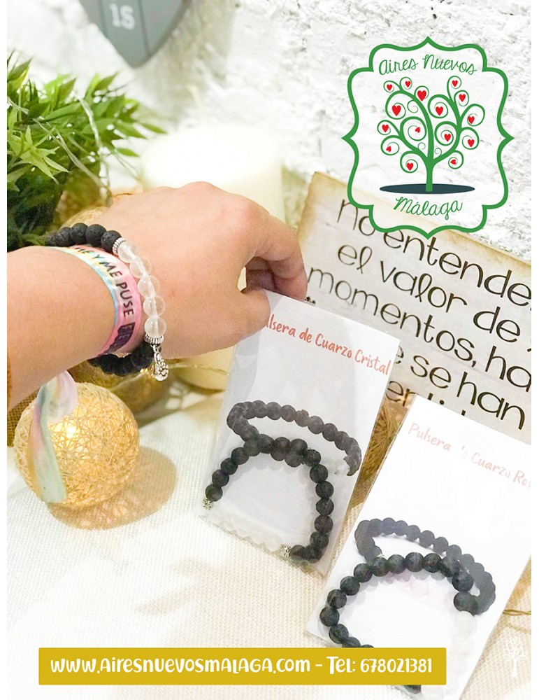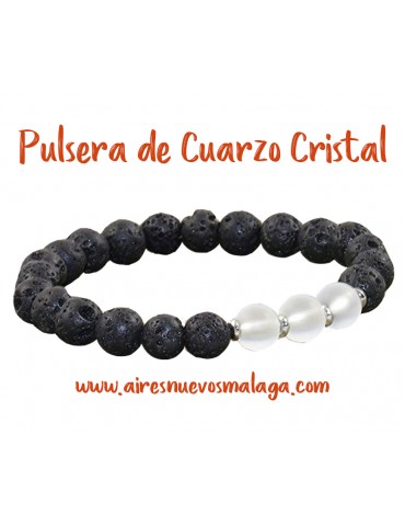 Pulsera de Cuarzo cristal y bolas de lava volcánica.